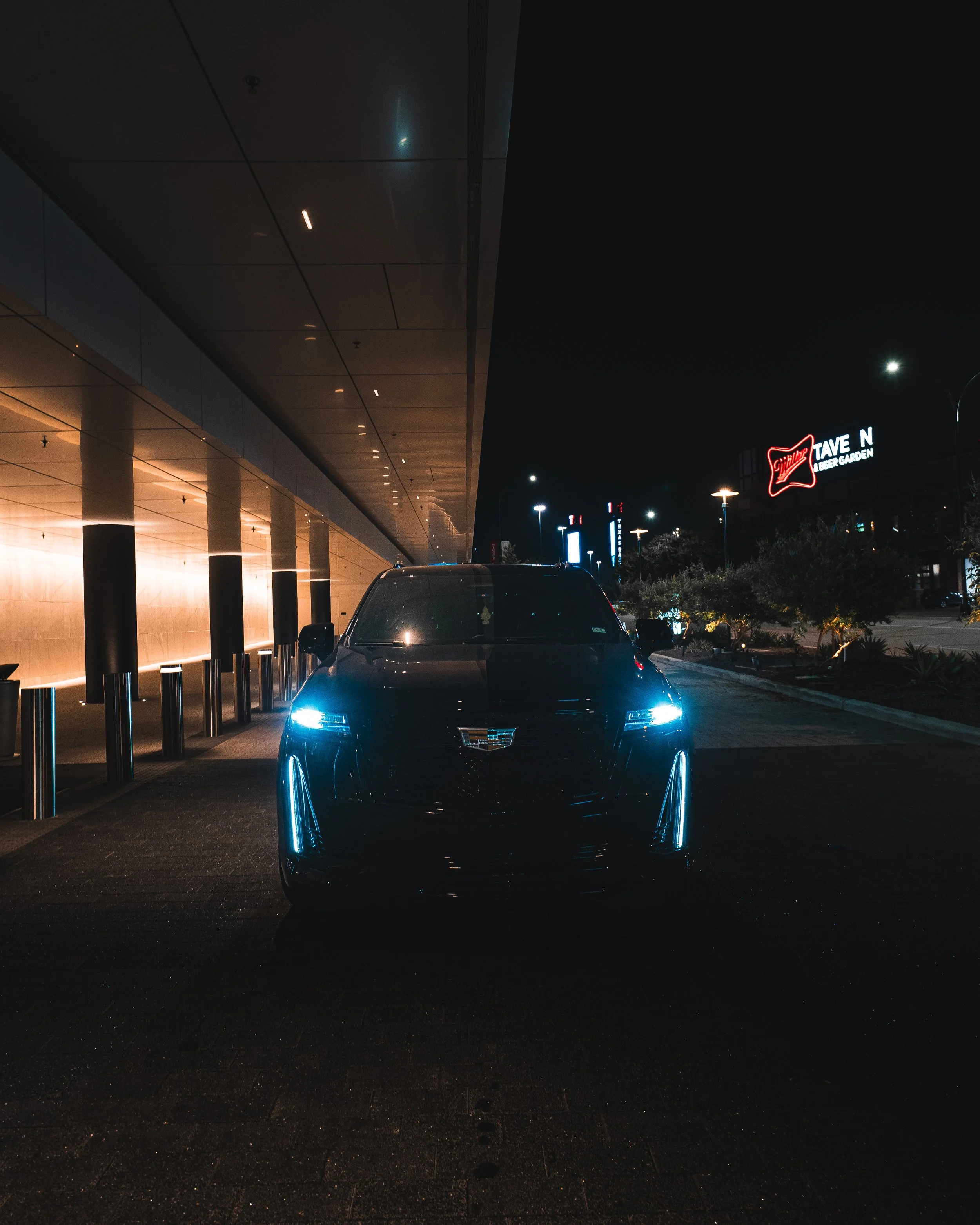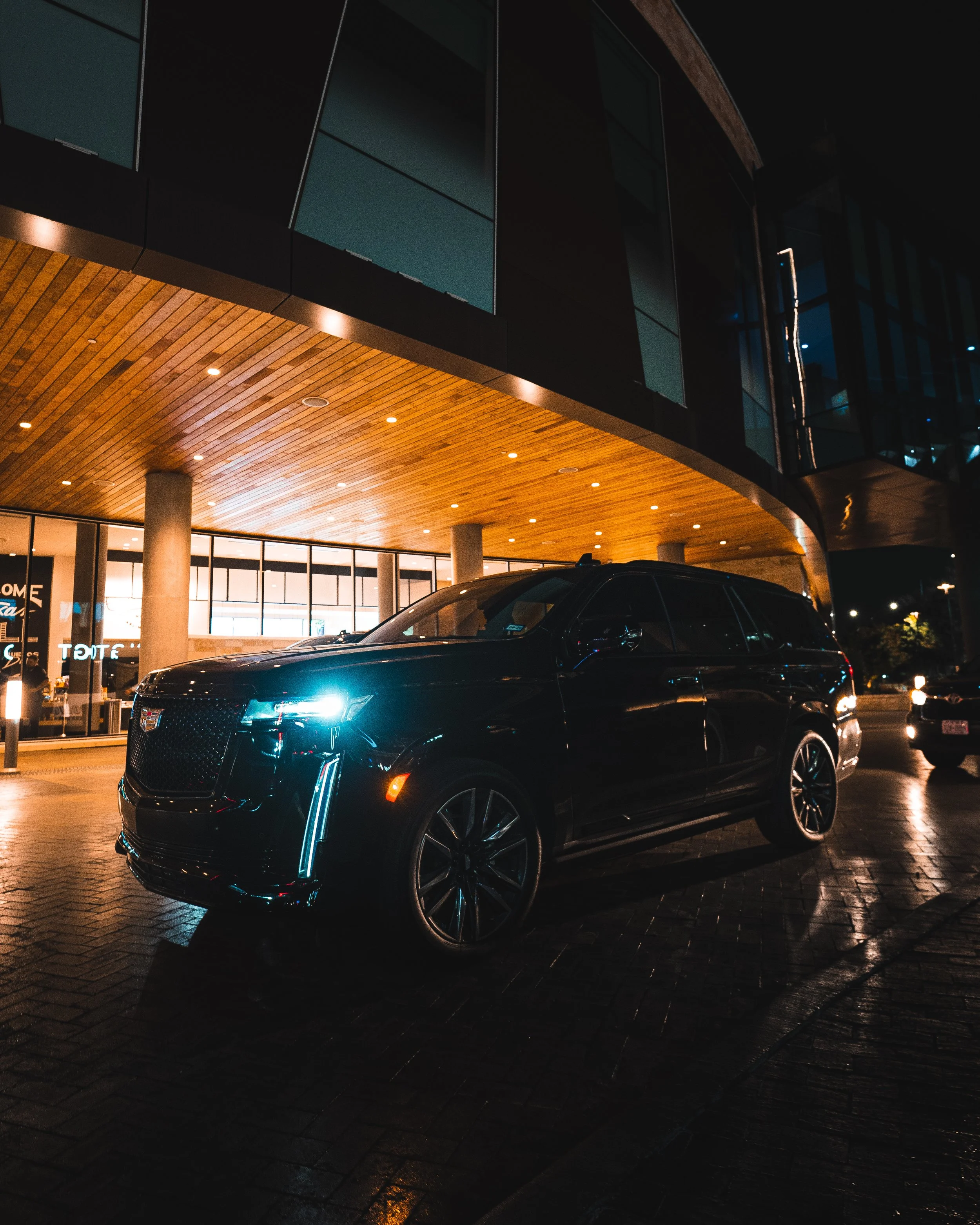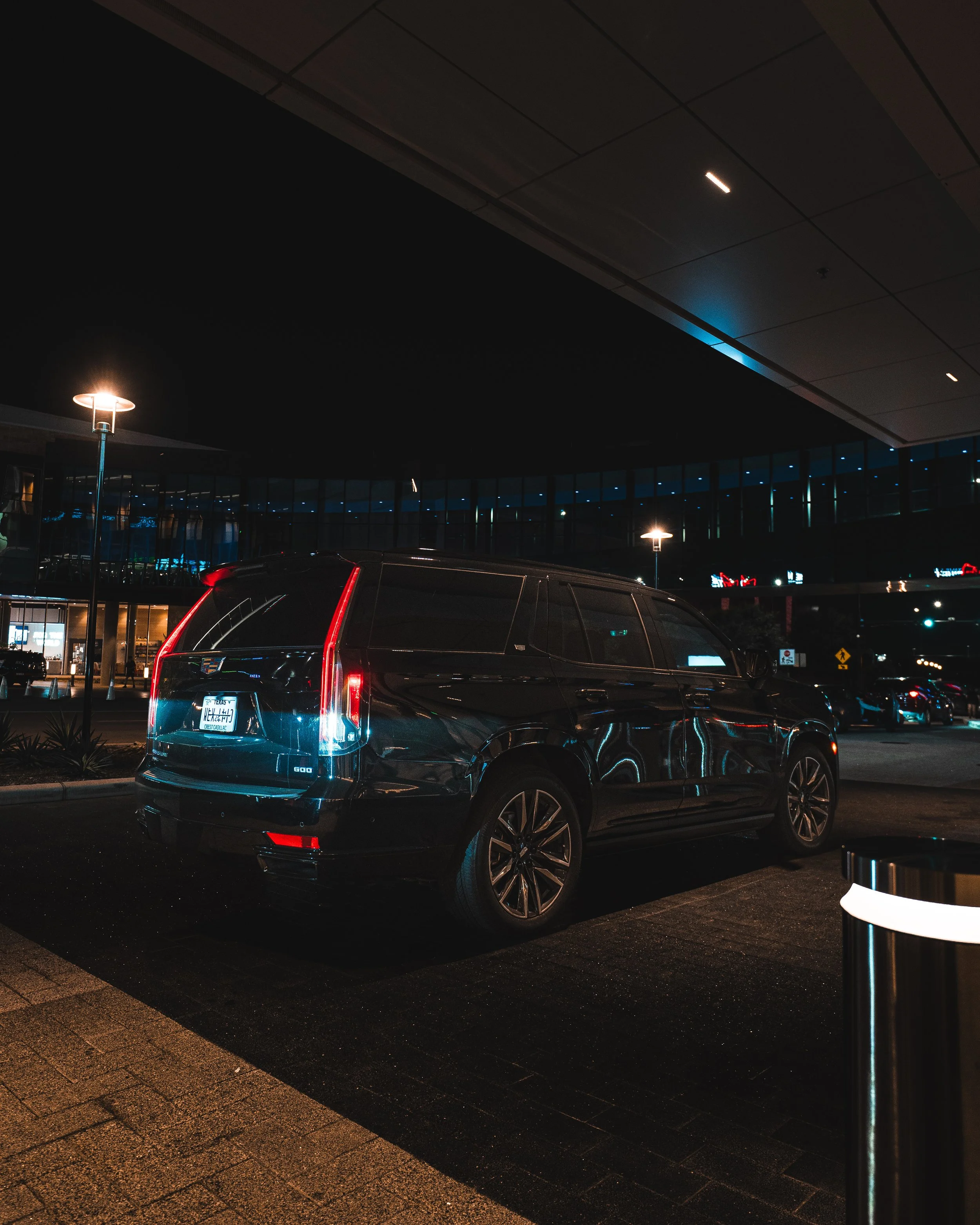 Cadillac Escalade Sport Platinum — black on black with 600 badge. Flagship full-size luxury SUV designed for upscale group travel and high-impact arrivals. Seats seven in hand-stitched leather with panoramic sunroof and. Magnetic Ride Control and air suspension keep every mile smooth and quiet. 36-speaker AKG Studio Reference audio fills the cabin. Ideal for weddings, VIP airport transfers, corporate outings, and nights out where space, comfort, and presence define the experience. Reserve your Escalade today and elevate your next drive.